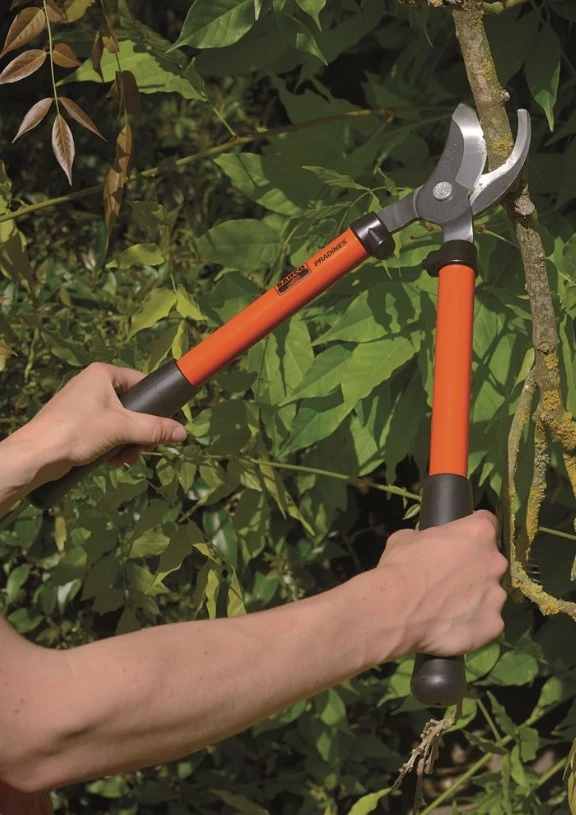 Professionele Takkenschaar van het merk Bahco. Deze Professionele takkenschaar heeft lange en lichte aluminium grepen. De speciaal gevormde papegaaibek is ideaal voor het vastgrijpen van de takken tijdens het snoeien. Gesmeed contrames is bestand tegen intensief gebruik. Zeer geschikt voor het snoeien van groen (leven) hout – in tegenstelling tot vaak goedkopere takkenscharen.