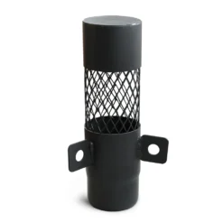 Gepoedercoat stalen vonkenvanger die bovenop het rookkanaal van de Wood Stove Veluwe past. De vonken die via het rookkanaal naar boven gaan kunnen niet weg door de afsluiting en het fijne gaas.