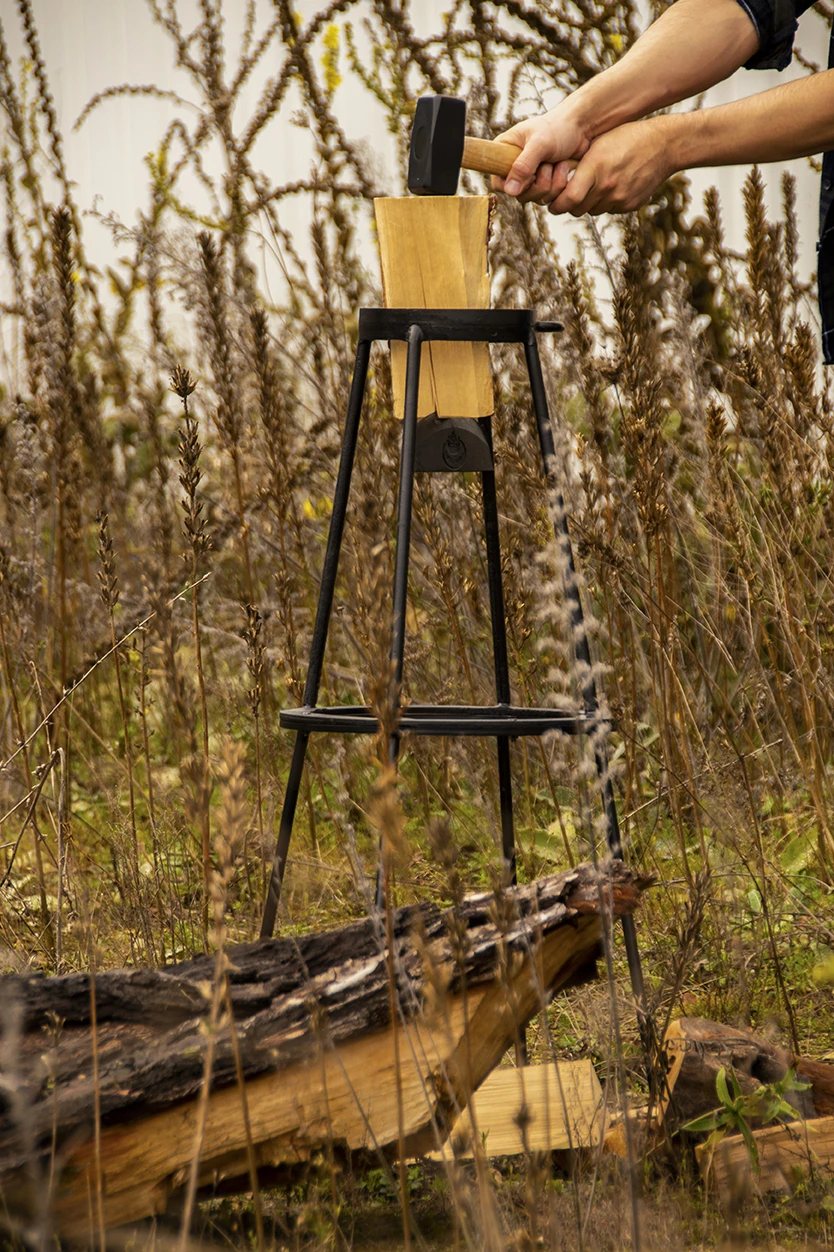 Maak in een handomdraai aanmaakhout met deze aanmaak houtklover. De aanmaak houtklover is gemakkelijk en veilig te gebruiken; er is geen bijl nodig. De set bestaat uit een houtklover, een standaard en een hamer.