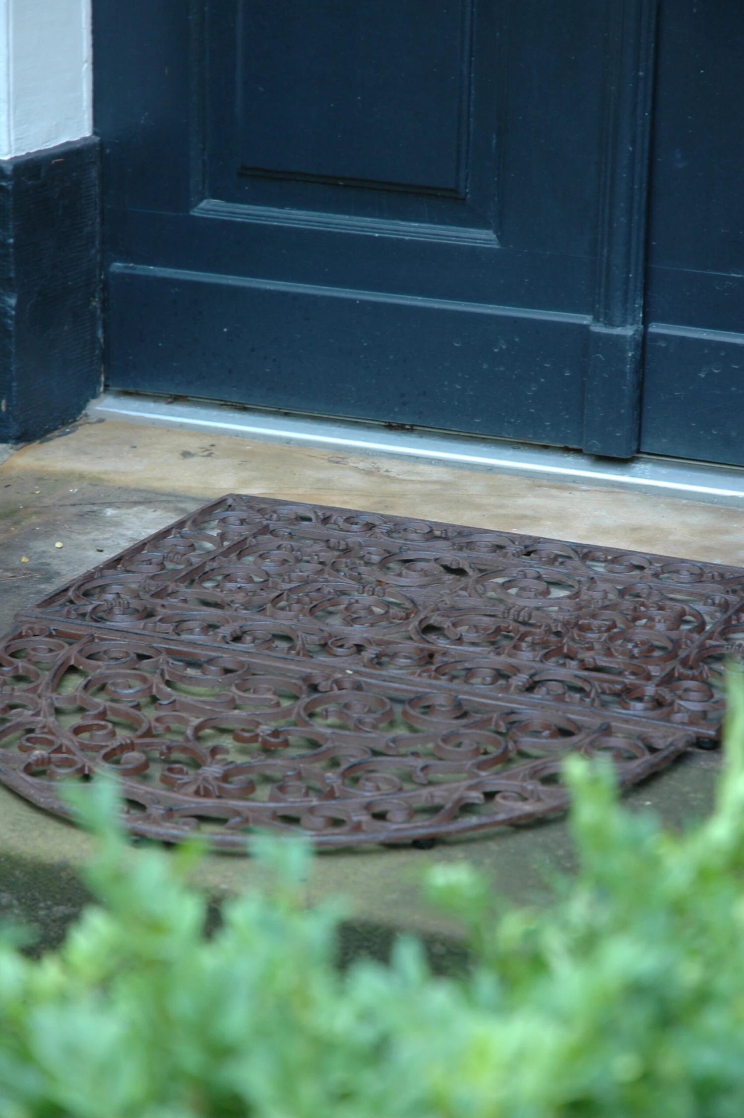 Deze rechthoekige gietijzeren deurmat zorgt voor een klassieke entree. De mat heeft een Victoriaans patroon met sierlijke krullen en is per stuk met de hand gegoten volgens eeuwenoud vakmanschap en traditie.