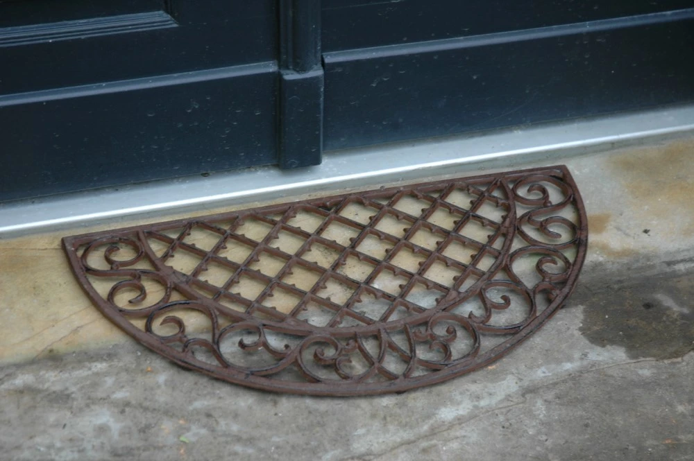Deze halfronde gietijzeren deurmat zorgt voor een klassieke entree. De mat heeft een Victoriaans patroon met sierlijke krullen en is per stuk met de hand gegoten volgens eeuwenoud vakmanschap en traditie.