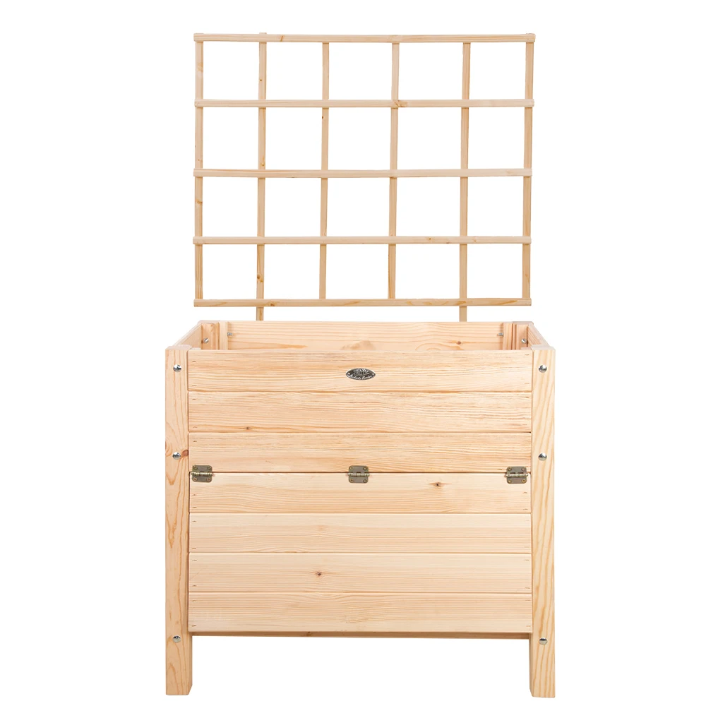Deze verhoogde houten kweektafel met opslag is geschikt voor in de tuin of jouw balkon. De kweekbak is gemakkelijk te onderhouden en komt inclusief worteldoek. De kweekbak is gemaakt van FSC gecertificeerd vurenhout. De metalen delen zijn gemaakt van RVS. Deze set wordt geleverd inclusief een klimplantrek of zogenaamde trellis.