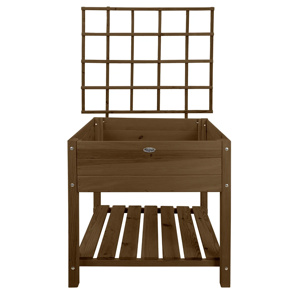 Deze verhoogde kweektafel is geschikt voor in de tuin of jouw balkon. De kweekbak is gemakkelijk te onderhouden en komt inclusief worteldoek. De kweekbak is gemaakt van FSC gecertificeerd vurenhout. De metalen delen zijn gemaakt van RVS. Deze set wordt geleverd inclusief een klimplantrek of zogenaamde trellis.