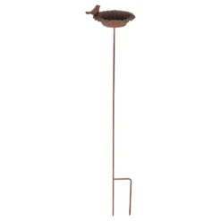 Geen tuin zonder bloemen! Deze gietijzeren schaal in de vorm van een bloem kan zowel met voer als met water gevuld worden, en daardoor vogels een mooie drink- of badplaats aanbieden. Een vogel heeft zich al op de rand genesteld, het is aan andere vogels om dit voorbeeld zo snel mogelijk te volgen.