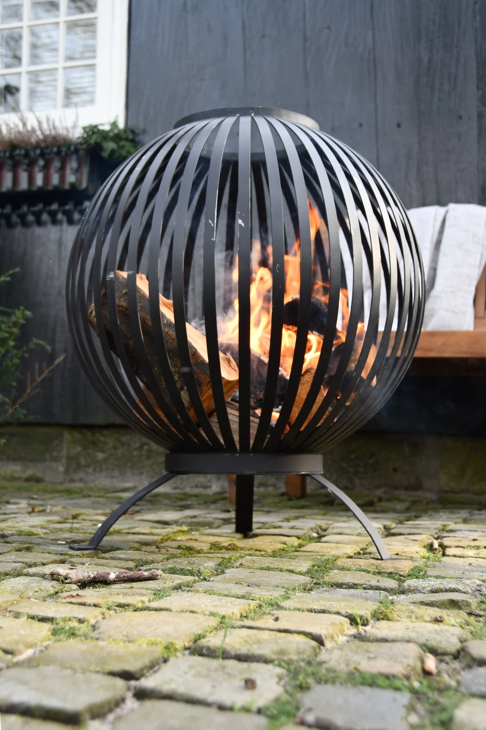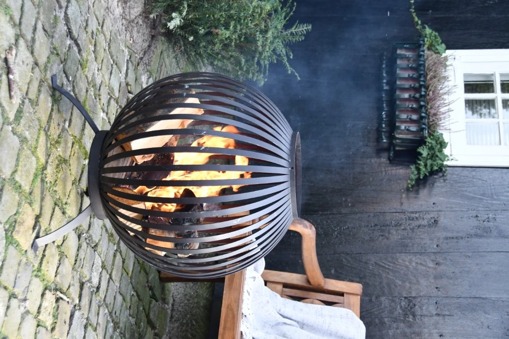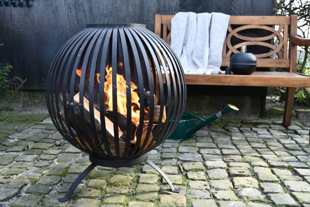 De vuurkorf is vervaardigd uit hoogwaardig metaal. Doordat de vuurkorf beschikt over zoveel verticale spijlen zal er in het donker een prachtig schouwspel ontstaan. Dit zorgt ervoor dat, naast dat hij erg mooi is, deze vuurkorf ook ontzettend veel sfeer geeft. De vuurbal korf staat op drie stevige poten, is maar liefst 66 centimeter hoog en heeft een diameter van 58 centimeter. De vuurkorf heeft een ruime opening, waardoor het plaatsen van hout zeer gemakkelijk zal gaan.