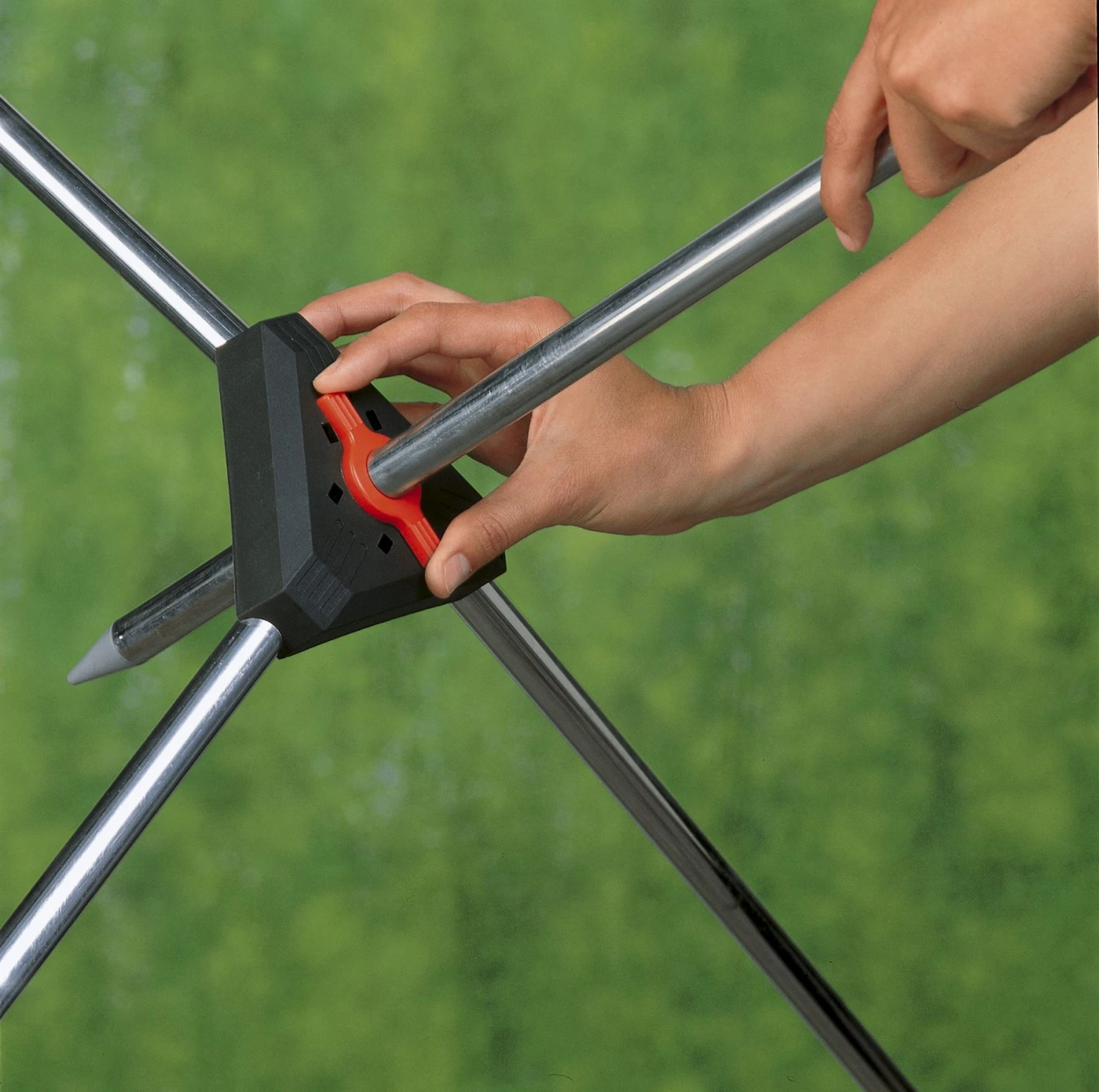 Buiten douchen is nu net zo comfortabel als binnen douchen. Dankzij het driepootstatief is deze eenvoudig op gras en terras te plaatsen.