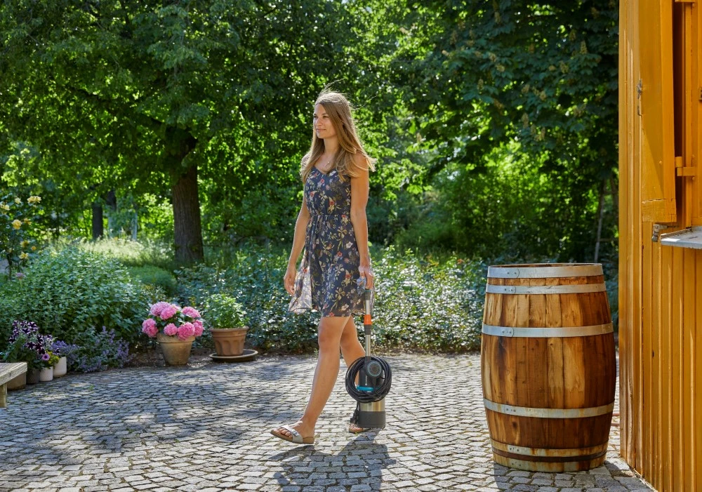 Als u op zoek bent naar comfortabel, extra krachtig en robuust gereedschap, dan is deze pomp iets voor u. De regentonpomp 4700/2 inox is praktisch, efficiënt en gemakkelijk te gebruiken. De pomp heeft een smalle behuizing van slechts 149 mm, is gemaakt van hoogwaardig roestvrijstaal inox en levert tot 4700 liter per uur. Te gebruiken met zowel een tuinspuit als een grotere sproeier zoals de AquaZoom. De pomp is voorzien van een filter dat vuil en andere deeltjes tegen houdt en zo schade aan de pomp voorkomt. En wat gebeurt er als het waterreservoir leeg is? Geen zorgen – het 4700/2 inox-model heeft een drijvende vlotterschakelaar die de pomp automatisch uitschakelt als het water onder een bepaald niveau zakt om drooglopen van de pomp te voorkomen. U kunt de in- en uitschakelhoogte naar wens instellen. Bij een gewenste restwaterhoogte van 5 mm kan de pomp worden ingesteld op continue werking door de vlotter vast te zetten. De geoptimaliseerde telescopische buis draagt ook bij aan het comfort, omdat u het water zonder verlies en knikken over de rand van het vat kunt leiden. Stel de buis eenvoudig af op de gewenste lengte tussen 670 en 870 mm aan uw regenton.