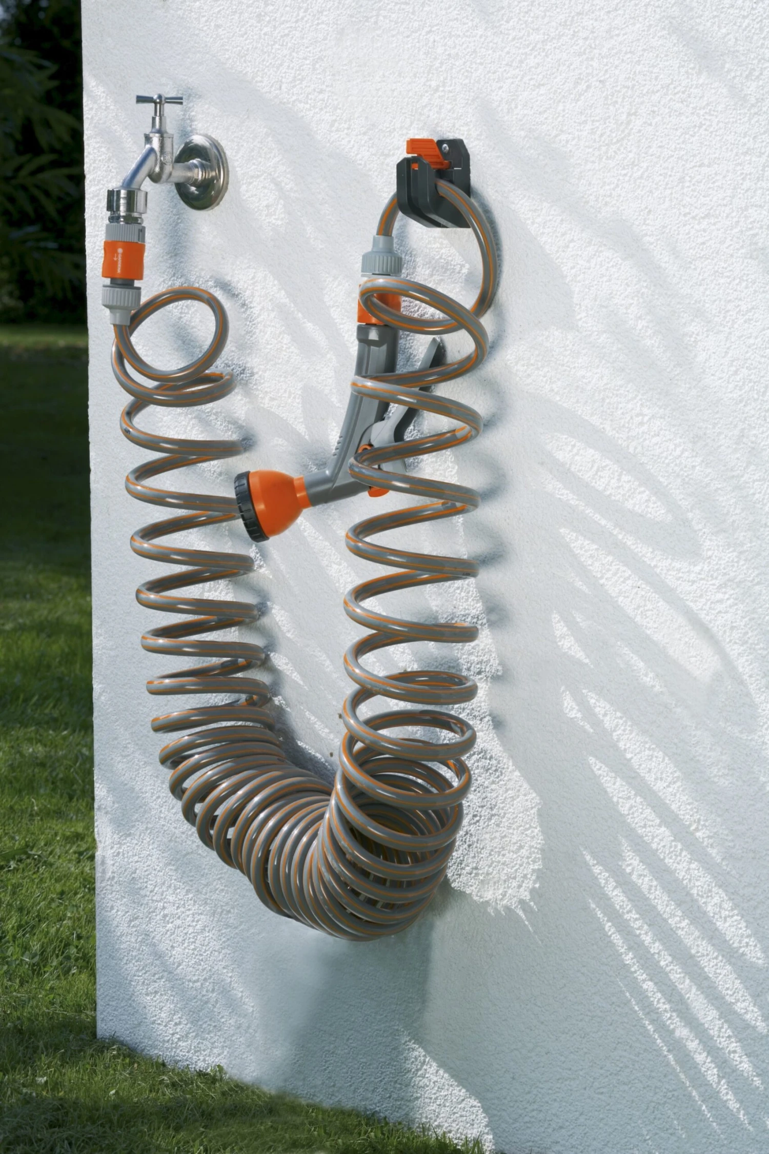 Deze Gardena Spiraalslang houdt zijn vorm na gebruik door de trekkracht van de spiraal. Deze Gardena Spiraalslangset bestaat uit: