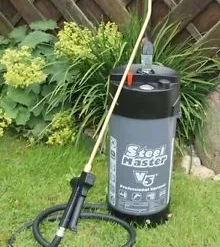 Middels de transparante zichtstreep kun je makkelijk aflezen of het weer tijd is om bij te vullen, door de vulopeningszeef zullen er geen brokstukken in de tank terecht komen. De Hobby Exclusiv is ontworpen met een stabiele XL ringvoet zodat je dan veilig en stabiel de drukspuit kan neerzetten en eventueel kunt bijvullen.