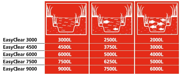 Voor vijverfilters wordt altijd aangeraden om overcapaciteit te kopen. Voor een 4500 liter vijver zou daarom beter de Easyclear 6000 kunnen worden aangeschaft. Dit zal ervoor zorgen dat u niet elke keer de filter hoeft schoon te maken. Hierdoor blijft er meer tijd over om van uw vijver te genieten!