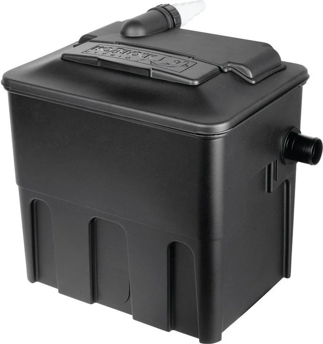 De Hozelock Ecocel vijverfilter is een bovengrondse vijverfilter die biologische en mechanische vijver filtratie gebruikt om de vijver gezond en helder te houden. De capaciteit is 2500 liter per uur en deze vijverfilter is geschikt voor vijvers met een vijverinhoud van 10000 liter. Zoals eerder genoemd is dit een bovengrondse vijverfilter. De filter kan aan de rand van de vijver geplaatst worden. Hij is voor zien van een zeer fijne filtermat. Dit zorgt voor uitstekende filtratie en biomedia voor nesteling van bacterieën.