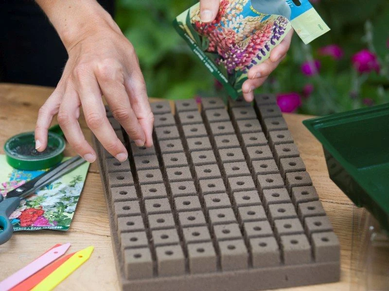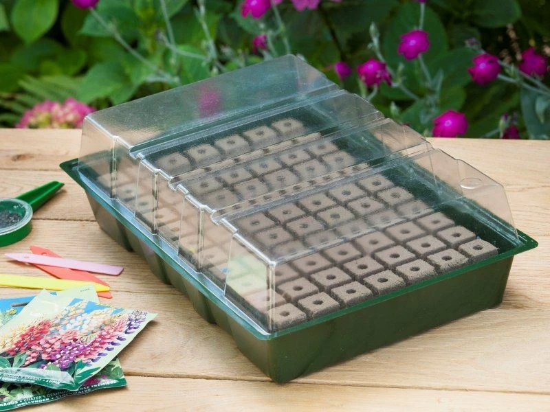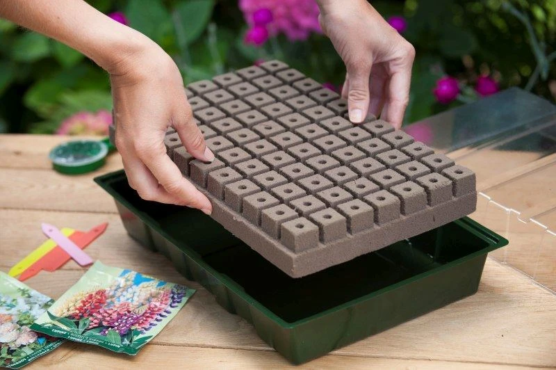 - Tray van steekschuim (groeimedium) met 7 rijen met elk 11 vakjes