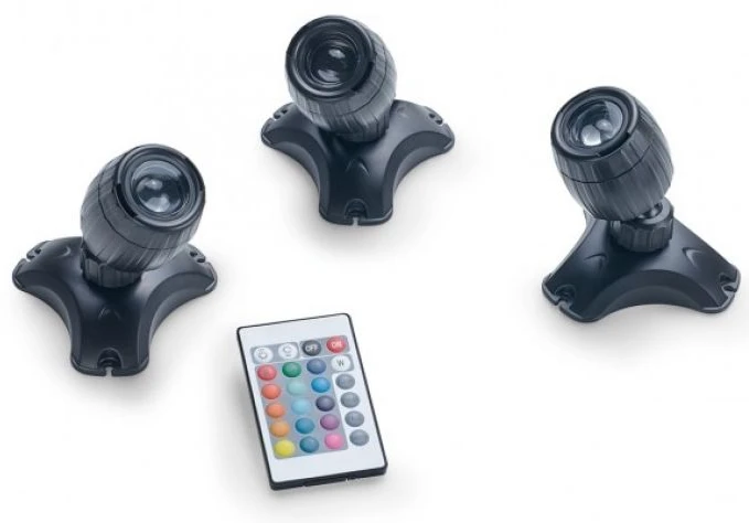 Deze set bestaat uit 3 spots welke voorzien van rood, groen, blauw en wit led verlichting.