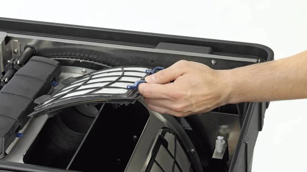 De vuilwaterpomp is een kwalitatief hoogwaardige drukpomp welke is weggewerkt onderin het filter, hierdoor blijft de compacte vorm gehandhaaft.