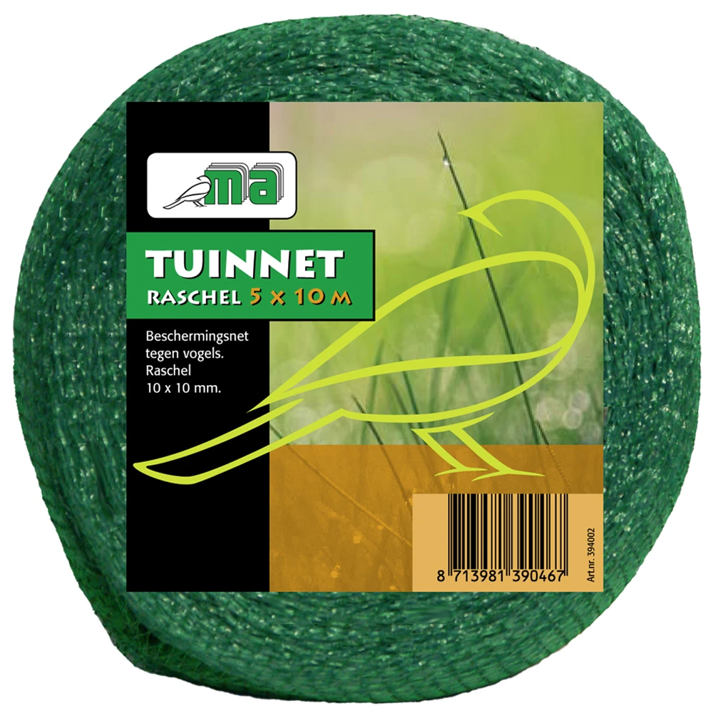 Een groen tuinnet voor uw tuin. Beschermt de vijver, fruitboom of net gezaaid gazon tegen vogels. Het net is van het merk Meuwissen Agro en is 10×5 meter.