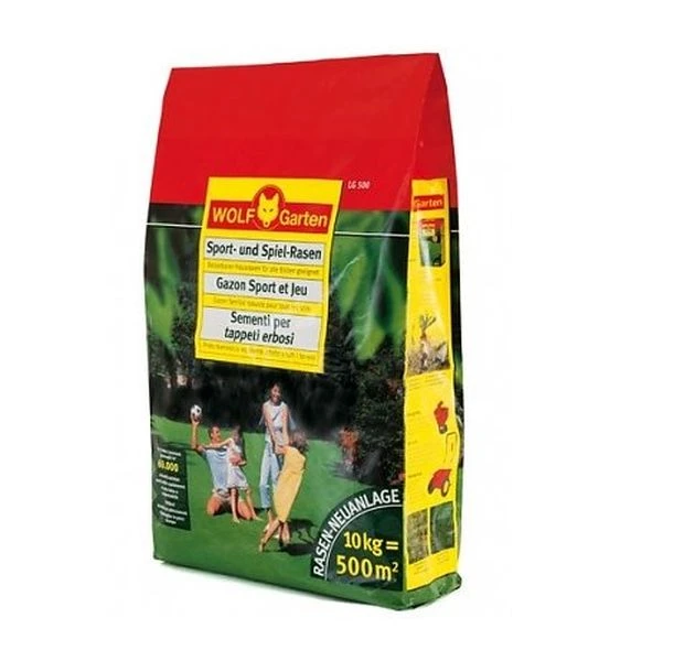 Het Sport en Speelgazon LG 500 van het merk Wolf Garten is ideaal voor het aanleggen van een gazon waar intensief gebruik van gemaakt wordt. Het snelle ontkiemen van het graszaad zorgt ervoor dat het gazon snel klaar is voor gebruik. Dit graszaad groeit op alle bodemsoorten. Toepassing in de maanden April – Oktober.